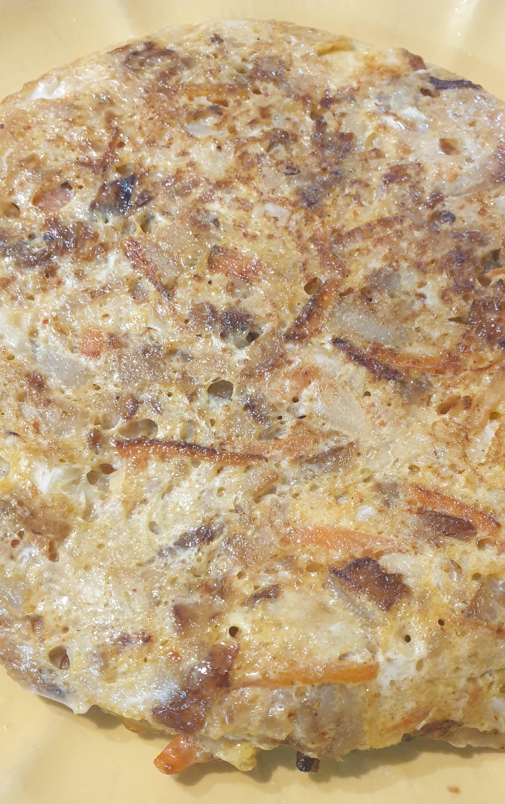 완성된 양배추 오믈렛을 잘라서 맛있게 먹었습니다.