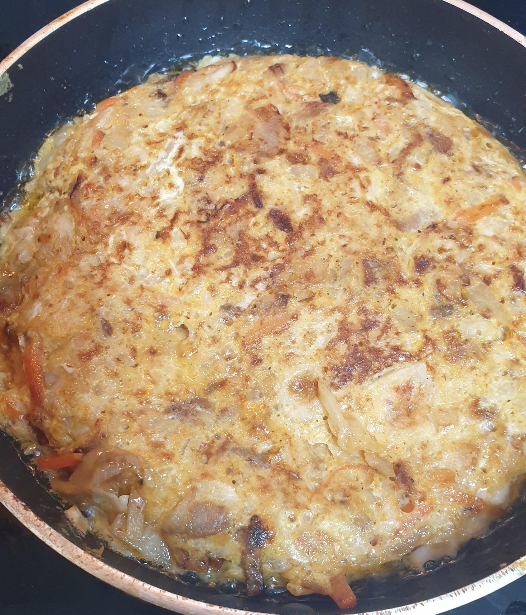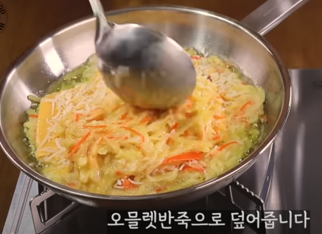 9. 그 위에 다시 오믈렛 반죽으로 덮는다.